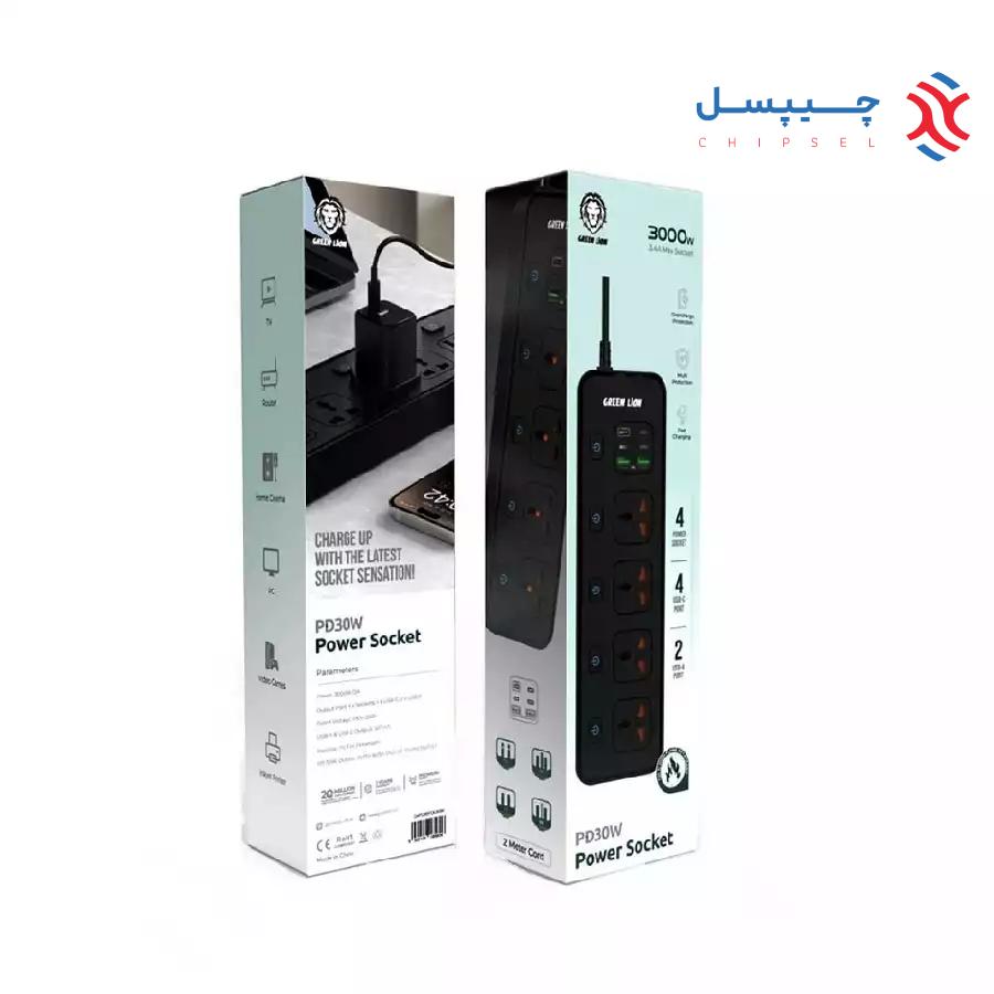 چیپسل لوازم جانبی چندراهی و محافظ برق 3000 وات گرین لاین مدل GNPD30POCK